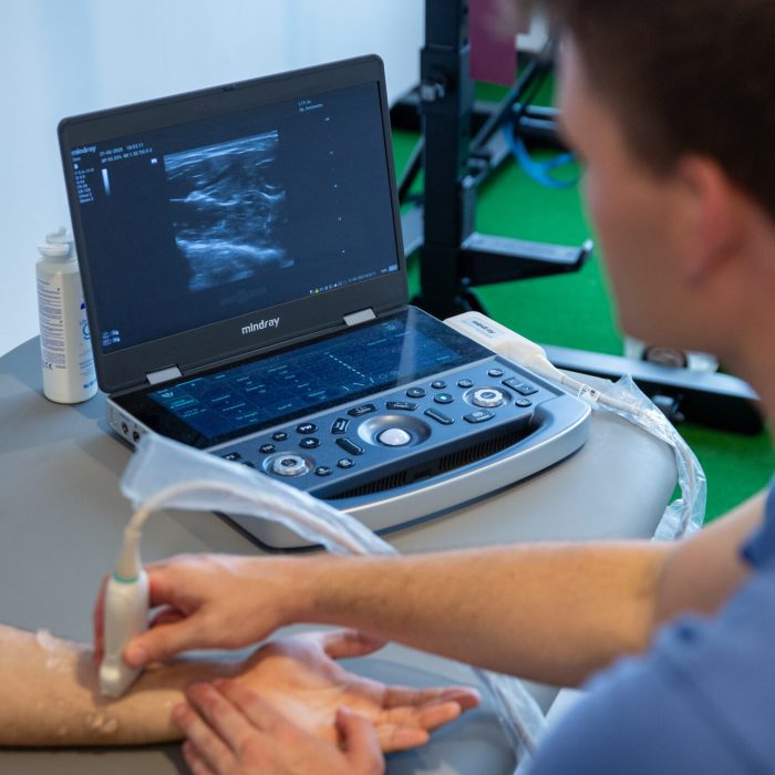 Muy útil para apoyar el diagnóstico y seguir lesiones en tiempo real. Nos permite visualizar músculos, tendones, ligamentos y articulaciones, ayudando a monitorizar la evolución del tratamiento con precisión.